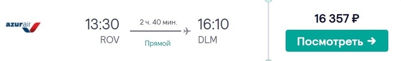 Azur Air выполняет чартерные рейсы в Даламан. Расписание зависит от спроса на туры, сезона. Полетное время — 2,5 часа. Билеты за 1,5 месяца — от 16300 рублей.