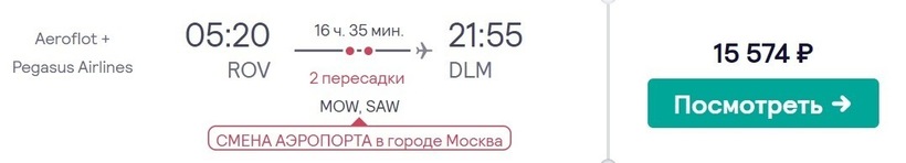 За это же время, но без смены аэропорта в Москве можно добраться, если выбрать в качестве первого перевозчика, который выполняет рейс до Москвы, авиакомпанию S7. Перелеты из столицы РФ и далее из Стамбула в Даламан выполняет также Pegasus Airlines. Билеты стоят минимум 15500 рублей за месяц и более до вылета.