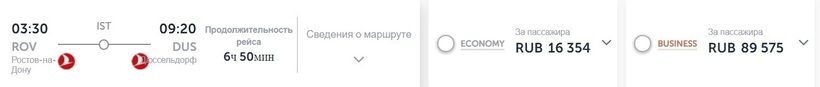Ведущий турецкий авиаоператор Turkish Airlines предлагает один из самых быстрых перелетов. На самолетах авиакомпании можно долететь до Дюссельдорфа за 7 часов. На стыковку в Новом аэропорту Стамбула уйдет всего один час, летите по единому билету — сразу направляйтесь в транзитную зону. Данный вариант перелета доступен четыре–пять раз в неделю. Что касается стоимости билетов, то цены стартуют с 16300 рублей (за пару недель и более до вылета).