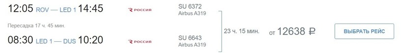 Стоимость билетов на новогодние или другие популярные праздники меняется, авиаперевозчик увеличивает ее минимум на 15%. Если летите в Дюссельдорф в периоды, когда спрос на перелеты высокий, покупайте авиабилеты заранее (за 4–6 месяцев). Также через Санкт-Петербург можно долететь до места назначения на крыльях дочерней авиакомпании «Аэрофлота» — «Россия». Рейс доступен каждый день. Общее время в пути — сутки. Стоимость проездных документов практически такая же. В одну сторону — от 12600 рублей, туда-обратно — от 19600 рублей. Цены актуальны, если бронировать билеты за месяц и более до поездки.
