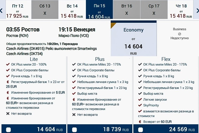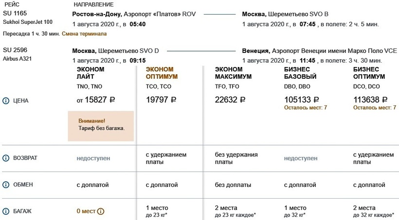 Между российским Ростовом и знаменитым итальянским городом на каналах прямое авиасообщение не налажено, но круглогодично можно преодолеть маршрут транзитными рейсами следующих операторов: