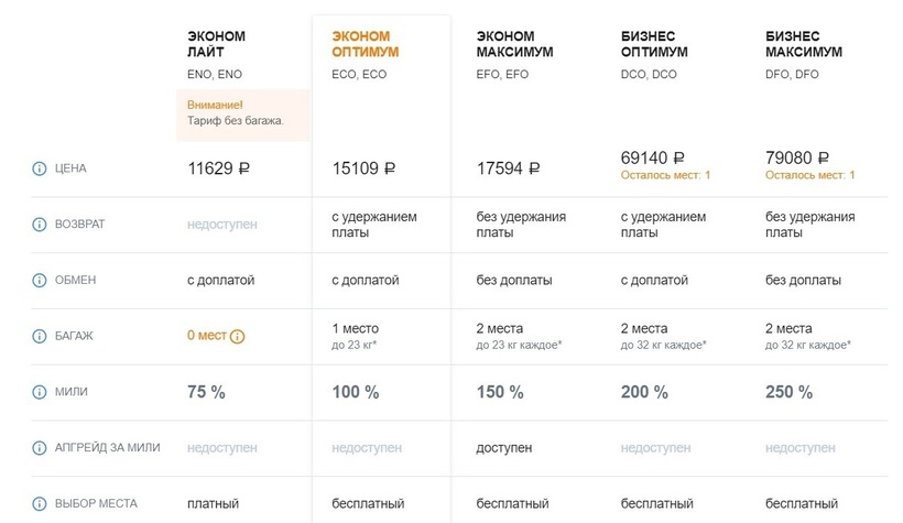 Есть 3 тарифа в экономкласс: