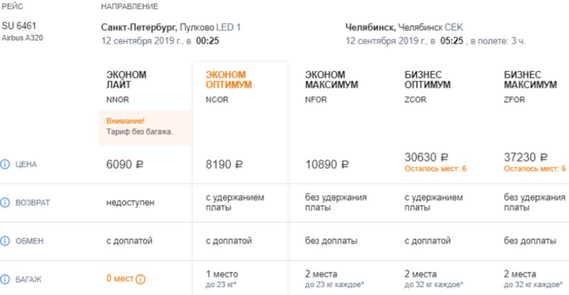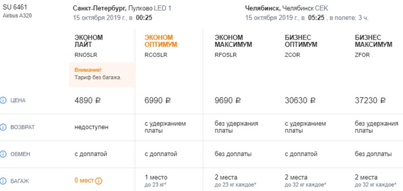 Аэрофлот (SU 2818) Airbus A320 | 00:25 Санкт-Петербург (LED) | 3 ч. 00 мин | 05:25 Челябинск (CEK) | 30 декабря |