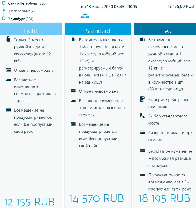 У KLM схожее расписание полетов: нидерландский перевозчик выполняет ежедневно по одному-два рейса через Амстердам. Со стыковкой в 2–5 часов авиаперелет длится 6,5–9,5 ч. По цене билетов у KLM преимущества нет: с багажом в одну сторону обойдутся от 14500 ₽, туда-обратно — от 20000 ₽ (с ручной кладью — от 12000 ₽ и 15000 ₽ соответственно). Бизнес-класс — от 56500 ₽. К плюсам KLM отнесу то, что стоимость авиабилетов у оператора актуальна для большинства вылетов на протяжении года. Полет с этим перевозчиком рекомендую предпочесть, когда цены у Air France высокие.