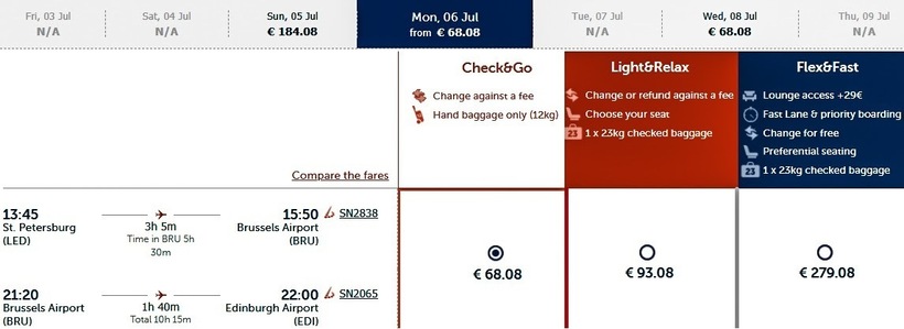 В период выполнения рейсов «Брюссельскими авиалиниями» однозначно могу рекомендовать полет только туда с этим перевозчиком, потому что он предлагает одни из самых недорогих авиабилетов. Путешествие с данной компанией с багажом будет дешевле на 3500 ₽, чем с Air France, и на 7000 ₽, чем с KLM. По сравнению с Lufthansa, Finnair и Vueling, экономия составит 14500–24500 ₽. Я путешествовала по маршруту ранней весной с Lufthansa. Хотя цена билетов туда-обратно у этой компании была такая же, как и у французского авиаоператора (и ниже на 2500 ₽, чем у KLM), зато время в пути с немецким перевозчиком я потратила минимум на 2 часа меньше, чем если бы летела с Air France.