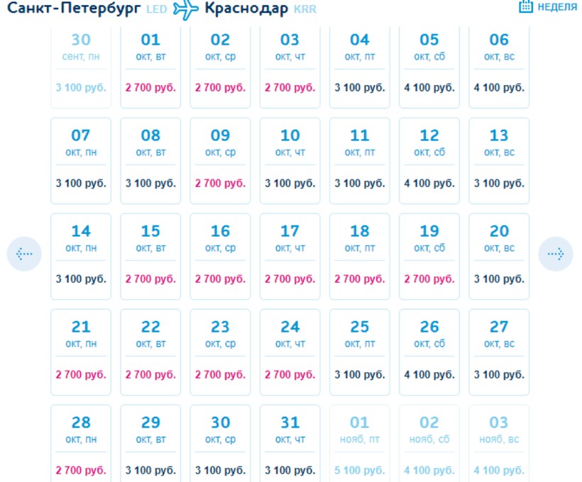 Билеты «туда-обратно» в декабре обойдутся вам всего в 16 720 рублей, а в сентябре придется заплатить за них не менее 54 507 рублей. В среднем же, долететь до Краснодара и вернуться в Санкт-Петербург можно за 26 451 рубль.
