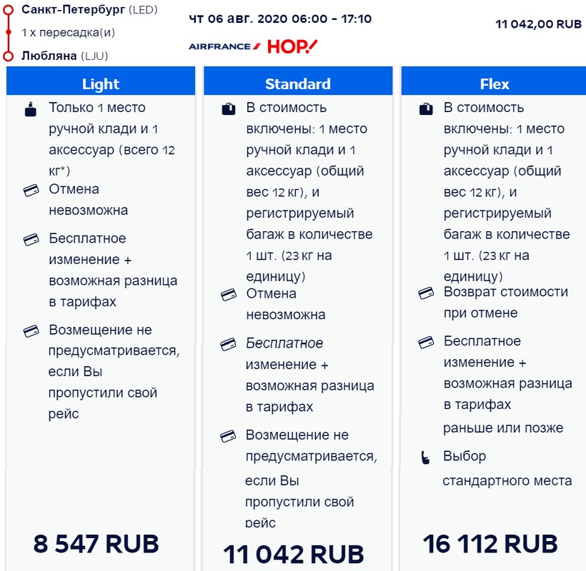 С Air France в весенне-летний период можно преодолеть путь ежедневно (вылет утренний). С пересадкой в Париже в 1–6,5 часа авиапутешествие длится 6,5–12 ч. Купить билет только туда у авиаоператора можно в среднем за 11000–13500 ₽ (с багажом), в обе стороны — от 17000 ₽. Цена полета с ручной кладью ниже на 2500 ₽. Бизнес-класс — от 44500 ₽.