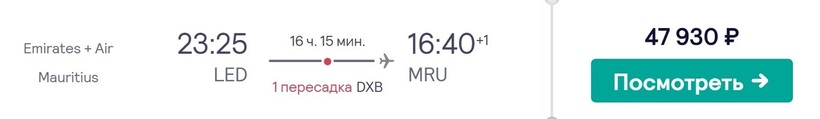 Я приобрела билеты на рейсы Emirates и Air Mauritius. Причина — компании предлагают один из самых оперативных перелетов с одной стыковкой (напомню, что дорога до конечного пункта займет 16,5 ч. вместе со стыковкой) и приемлемую цену на билеты. Что касается расписания, то вылет из Питера поздно вечером, на месте окажетесь на следующий день (ближе к вечеру). Санкт-Петербург и Маврикий находятся в разных часовых поясах, но разница во времени несущественная — один час.