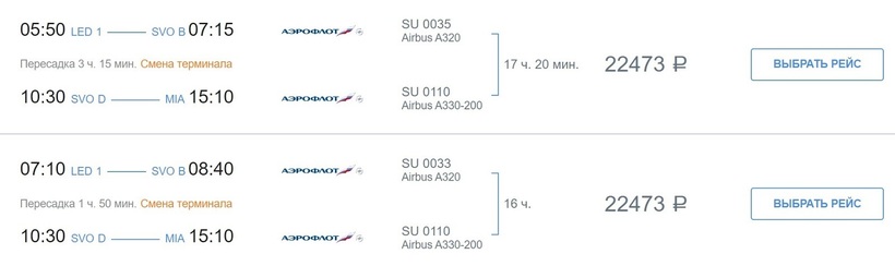 Рейсы Санкт-Петербург — Майами осуществляют следующие авиакомпании: