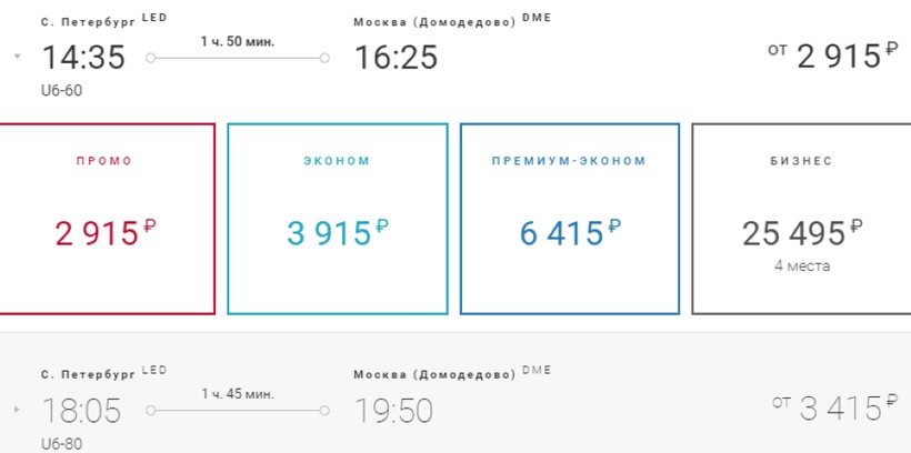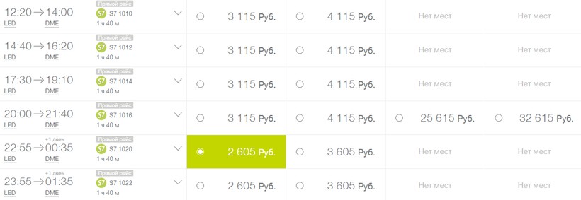 S7 Airlines летает в Москву из Петербурга 10 раз в день. Я рекомендую выбирать вечерние рейсы, они будут чуточку дешевле.