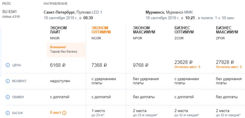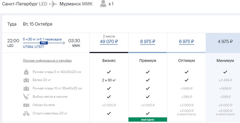 «Оптимум» — включает до 23 кг багажа, вернуть авиабилет или внести в него изменения можно за дополнительную плату.