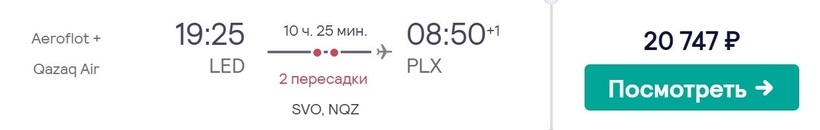 Также можете попасть в Семей, выбрав в качестве авиаперевозчиков «Аэрофлот» и Qazaq Air. Это менее популярный вариант из-за стоимости билетов (от 20700 рублей за месяц и более). Общее время в пути — 10,5 ч.