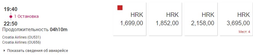 Крупнейший хорватский оператор перевозит своих пассажиров транзитом через Загреб. На мой взгляд, самый удобный вариант тот, где стыковка составляет всего 35 минут, а весь перелет занимает 4 часа 10 минут. Вылет по расписанию запланирован на вечер.