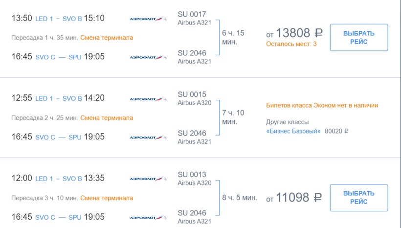Другие варианты перелета можно посмотреть у авиакомпаний: