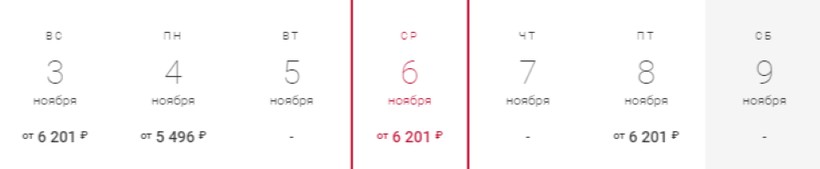 Прямые перелеты отсутствуют по пятницам, воскресеньям и вторникам.
