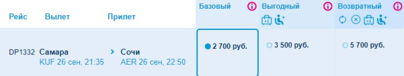 | Pegas Fly (EO 422) Boeing 737-900 | 16:10 Самара (KUF) | 3 ч. 10 мин | 18:20 Сочи (AER) | 19 октября |