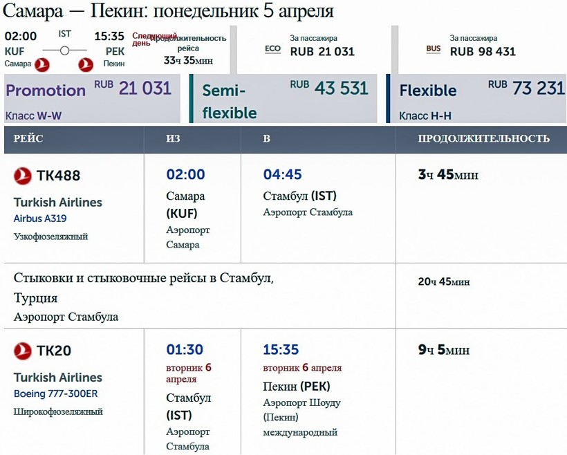 Прямые рейсы из российской Самары в столицу Китая не выполняются, так что лететь по маршруту придется с пересадкой. Круглогодичные транзитные перелеты с одной стыковкой предлагают три авиакомпании: