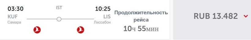 За 13500 рублей купите билет в эконом («Промотариф», билет невозвратный). Цены в бизнес-класс стартуют со 108300 рублей (за неделю). Практически за такое же время (10,5 ч.) до Лиссабона можно добраться с S7 и TAP Portugal. Билеты только туда обойдутся почти на 3000 рублей дороже, чем у Turkish Airlines (в 16200 рублей за пару недель). Стыковка — 3 ч. (московский аэропорт Домодедово).