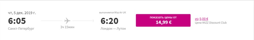 Лайнеры Wizz Air совершают вылеты из Пулково до лондонского Лутона ежедневно рано утром.
