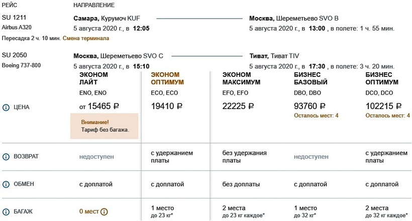 Другие варианты перелета можно посмотреть у авиакомпаний: