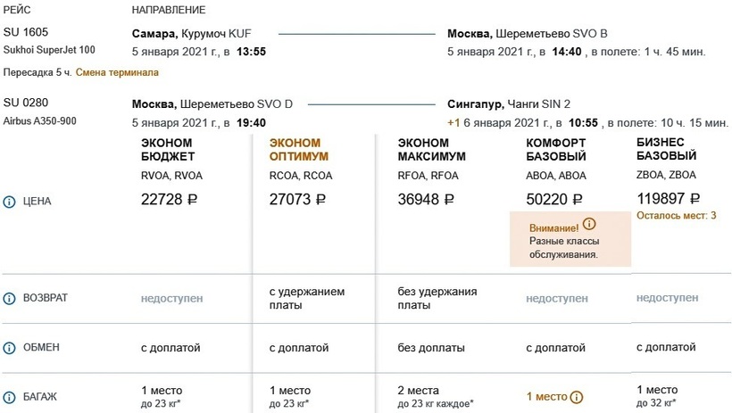 билетов ниже на 6000 ₽, чем у S7 и Singapore