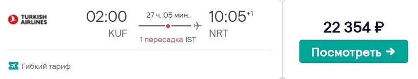За сутки с небольшим до места назначения доберетесь с Turkish Airlines. Вариант перелета с турецким авиаоператором подойдет тем, кто по пути в Токио не против провести некоторое время в Стамбуле. Пересадка здесь длительная — 12 часов. За это время можно, например, съездить на бесплатную обзорную экскурсию по городу, которую организовывает Turkish Airlines для пассажиров, у которых стыковка длится более 6 часов. Стоимость перелета Самара — Стамбул — Токио за 2,5 месяца до вылета — от 22300 рублей.