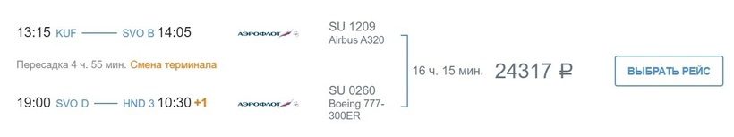 Получается, что один из самых оперативных транзитных перелетов до Токио предлагает «Аэрофлот». Напомню, что общая продолжительность пути составляет 16 часов. Именно на рейсы этого авиаоператора я и купила билеты. Цены у «Аэрофлота» вполне лояльные, плюс перевозчик дает возможность получить скидку в размере 15%, если приобрести сразу билет и в обратную сторону. Также отмечу и удобное расписание. Вылетает лайнер из аэропорта Самары в обед. В Токио окажетесь на следующий день утром. Стоит помнить, что между российским городом и столицей Японии есть существенная разница во времени — 5 часов.