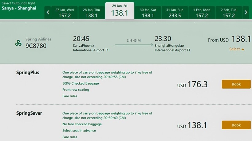 Билеты «туда-обратно» в октябре обойдутся вам всего в 10 981 рубль, а в сентябре придется заплатить за них не менее 66 962 рубля. В среднем же, долететь до Шанхая и вернуться в Санью можно за 34 540 рублей.