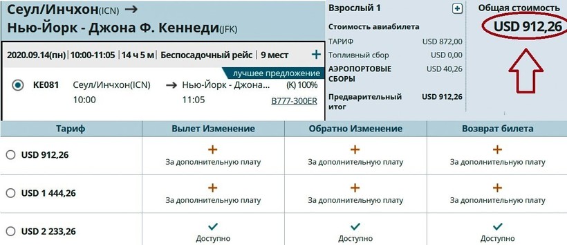 Korean Air (KE 85) Boeing 777-300ER | 19:30 Сеул (ICN) | 14 ч. 00 мин | 20:30 Нью-Йорк (JFK) | 26, 27, 28, 29, 30, 31 октября, 1 ноября, 8, 9, 10, 11, 12, 13, 14, 15, 16, 17, 18, 19, 20 марта, … |