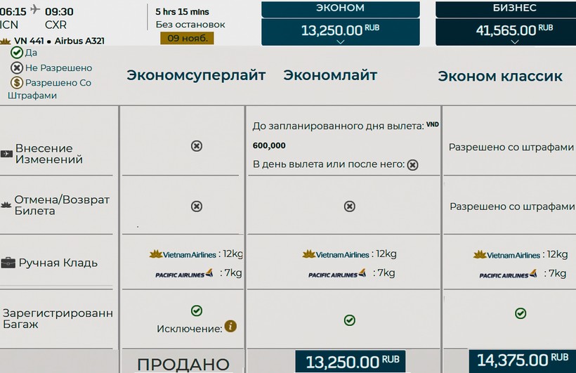 ₽. Как и у Vietnam Airlines, могу порекомендовать
