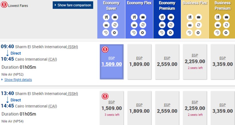 Этот египетский перевозчик не может похвастаться удобным расписанием, есть только два ежедневных рейса — утренний и дневной.