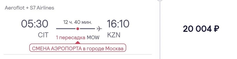 Авиакомпании, выполняющие рейсы: «Аэрофлот» и S7. У авиаоператоров разные хабы в Москве, поэтому придется сменить воздушный порт. Первый авиарейс выполняет «Аэрофлот», лайнер авиакомпании приземлится в Шереметьево. Следующий вылет с S7 из Домодедово. На стыковку отводится 7,5 ч. Удобнее всего из одного авиаузла в другой добираться на такси. Весь путь займет не более 1,5 ч.