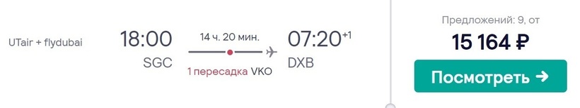 Накануне вылета лайнера билеты стоят примерно на 30% дороже. У этих же авиакомпаний есть и более длительный вариант перелета, билеты на который можно купить за 10600 рублей (за две недели). При этом на дорогу уйдет 22 часа. Пересадка в столице РФ (Внуково) — 13,5 ч. Авиапутешествие с двумя пересадками обойдется в 13800 рублей (при условии бронирования билетов за месяц). Перевозчики: «ЮТэйр» и Turkish Airlines. В пути нужно провести 19 часов. Из этого времени на стыковки уйдет 8 часов (во Внуково и Новом аэропорту Стамбула). Также из Сургута в Дубай можно попасть с «Аэрофлотом». Правда, вариант этот непопулярный из-за стоимости билетов (от 24000 рублей за неделю). Стыковки всегда в Шереметьево. У а/к есть более десяти ежедневных вариантов перелетов. Минимальное время в дороге — 11 часов, максимальное — практически 1,5 суток. Лайнеры отправляются из единственного международного аэропорта Сургута. Бюджетный способ добраться до воздушной гавани — сесть на автобус № 21.
