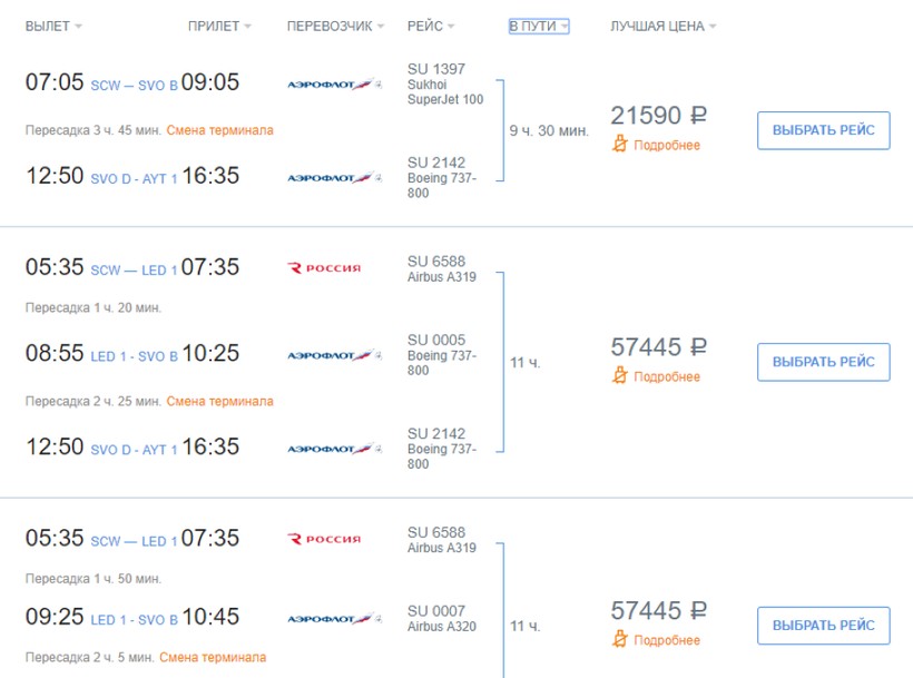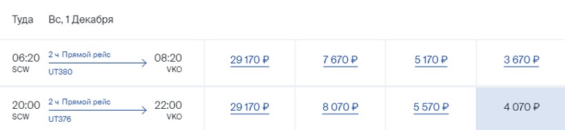 Другие варианты перелета можно посмотреть у авиакомпаний: