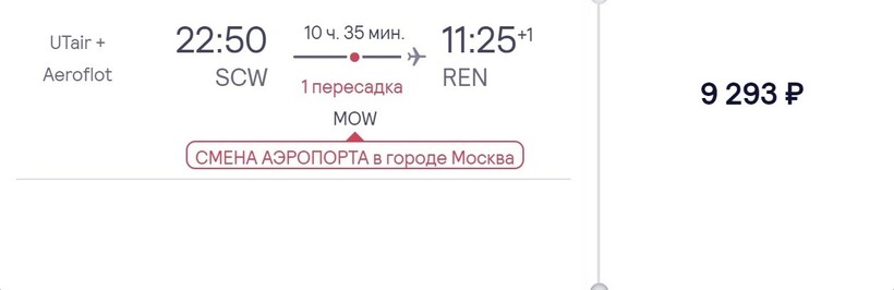 У самого известного российского авиаоператора «Аэрофлот» есть более дешевый вариант. Он еще получается и более быстрый. До Оренбурга долетите за 6 часов. Стыковка в столице РФ займет 1,5 часа. Она будет проходить в аэропорту Шереметьево. Смена терминала не понадобится, летите по единому билету, что также удобно. Перелет доступен ежедневно. Стоимость билета только туда — от 7200 рублей.