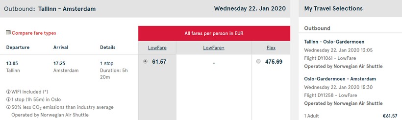 Довольно часто я летаю с лоукостерами ради экономии, однако при перелете из Таллина в Амстердам предпочитаю airBaltic. Во-первых, рейс прямой, во-вторых, он ежедневный. К тому же самолеты оператора комфортабельные, просторные, откидываются спинки кресел. Есть большой выбор тарифов. Добираться с Norwegian советую в исключительных случаях, потому что разница в цене не существенная, а сложностей куда больше. И лететь дольше, и расписание неудобное, и за все дополнительные опции придется доплачивать.