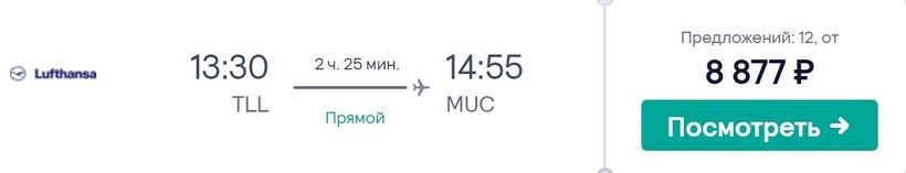 | Lufthansa (LH 2405) Airbus A220-300 | 12:55 Таллин (TLL) | 2 ч. 30 мин | 14:25 Мюнхен (MUC) | 19 октября, 29 марта, 5, 12, 19, 26 апреля, 3, 10, 17, 24, 31 мая, 7, 14, 21, 28 июня, 5, 12, 19, 26 июля, 2 августа, … |