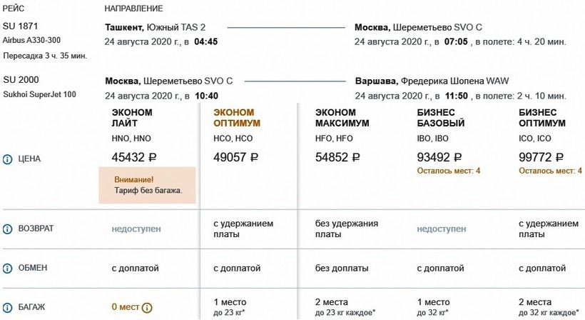 аэрофлотовской на 20500 ₽. Самый
