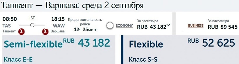 Билеты «туда-обратно» в ноябре обойдутся вам всего в 42 414 рублей, а в мае придется заплатить за них не менее 65 279 рублей. В среднем же, долететь до Варшавы и вернуться в Ташкент можно за 51 792 рубля.