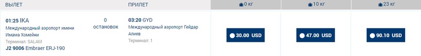 Азербайджан Хава Йоллары (J2 8018) Embraer 190 | 01:40 Тегеран (IKA) | 1 ч. 30 мин | 03:40 Баку (GYD) | вт, пт, сб, вс с 31.03 |