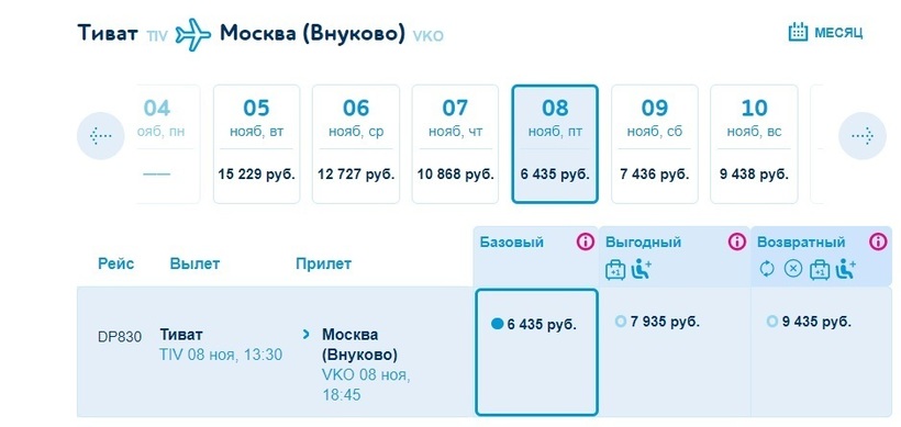 Актуальное расписание прямых рейсов из Тивата в Москву поможет вам подобрать оптимальное время и дату вылета.