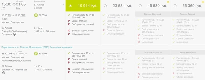 назначения долетите с S7. Общее время