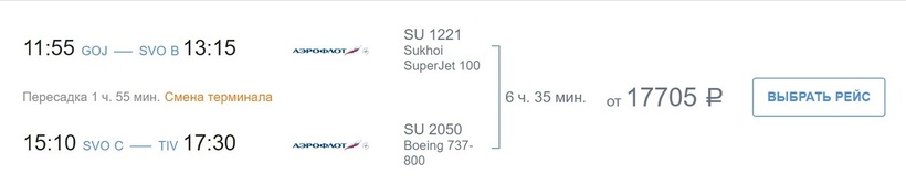 Также в Нижний Новгород можно попасть на самолетах самой крупной российской компании «Аэрофлот». Перевозчик предлагает более быстрый перелет, чем S7. До места назначения доберетесь за 6,5 ч. Минимальная стоимость билетов — 17700 рублей (за три месяца).