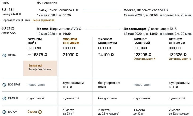 Между Томском и Дюссельдорфом прямые авиарейсы не выполняются, но преодолевать маршрут с одной непродолжительной пересадкой можно круглый год на крыльях двух российских операторов: