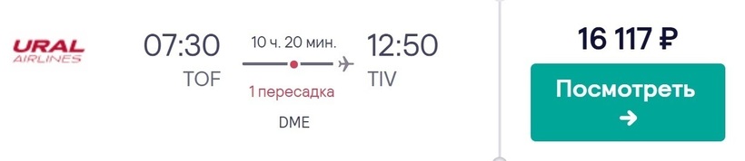 Беспересадочных авиарейсов в этот популярный черногорский город нет. Расскажу про самые актуальные транзитные перелеты. По маршруту Томск — Москва — Тиват предлагает авиаперевозки компания «Уральские авиалинии». Перелет с этой компанией довольно комфортный: общее время в пути составляет от 9,5 до 10,5 ч. (расписание нестабильное), на стыковку в Домодедово отводится 1,5–2,5 часа. Полетите по единому билету, и багаж будет зарегистрирован до конечного пункта еще в аэропорту Томска. Стоимость билетов в одну сторону составляет 16100 рублей (за три месяца). Перевозчик предлагает три тарифа в экономический класс обслуживания и один — в бизнес-класс.