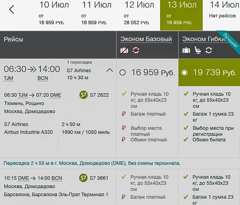 путешествие с S7 получается дешевле, чем