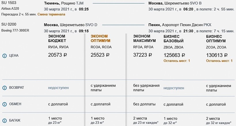 Бизнес-класс у этой авиакомпании предлагается только на маршруте Новосибирск — Пекин, а на первом участке пути возможен полет лишь в классе эконом. Такой билет обойдется вам от 67000 ₽. Цены у S7 также сохраняются в течение всего года, поэтому сэкономить за счет предварительного бронирования авиабилетов не удастся.