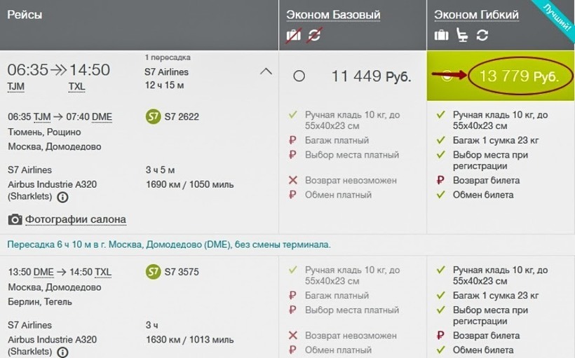 Покупать билеты у S7 советую минимум за 3 недели до вылета, потому что на ближайшие даты они дороже на 4000–5500 ₽. Кроме того, что цены увеличиваются на новогодние и майские праздники (на 5000–25000 ₽ в одну сторону), они также возрастают на летний сезон — с конца июня по октябрь стоимость авиаперелета выше на 6500 ₽. Прилетают лайнеры в аэропорт Берлин-Тегель.