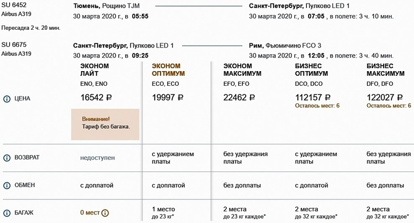 тарифу «Лайт» авиабилеты дешевле на