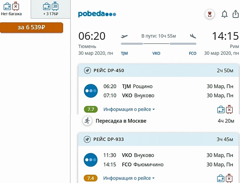 Другие варианты перелета можно посмотреть у авиакомпаний:
